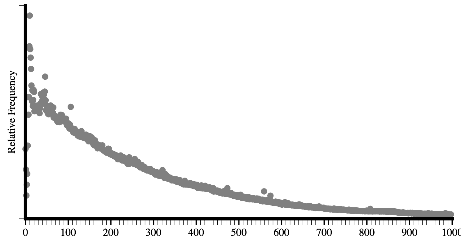 上記の図3.7は、ページ中に現れたかどうかでカウントされた要素のトップ150を表示しています。利用率がどのように落ちていくかに着目してください。