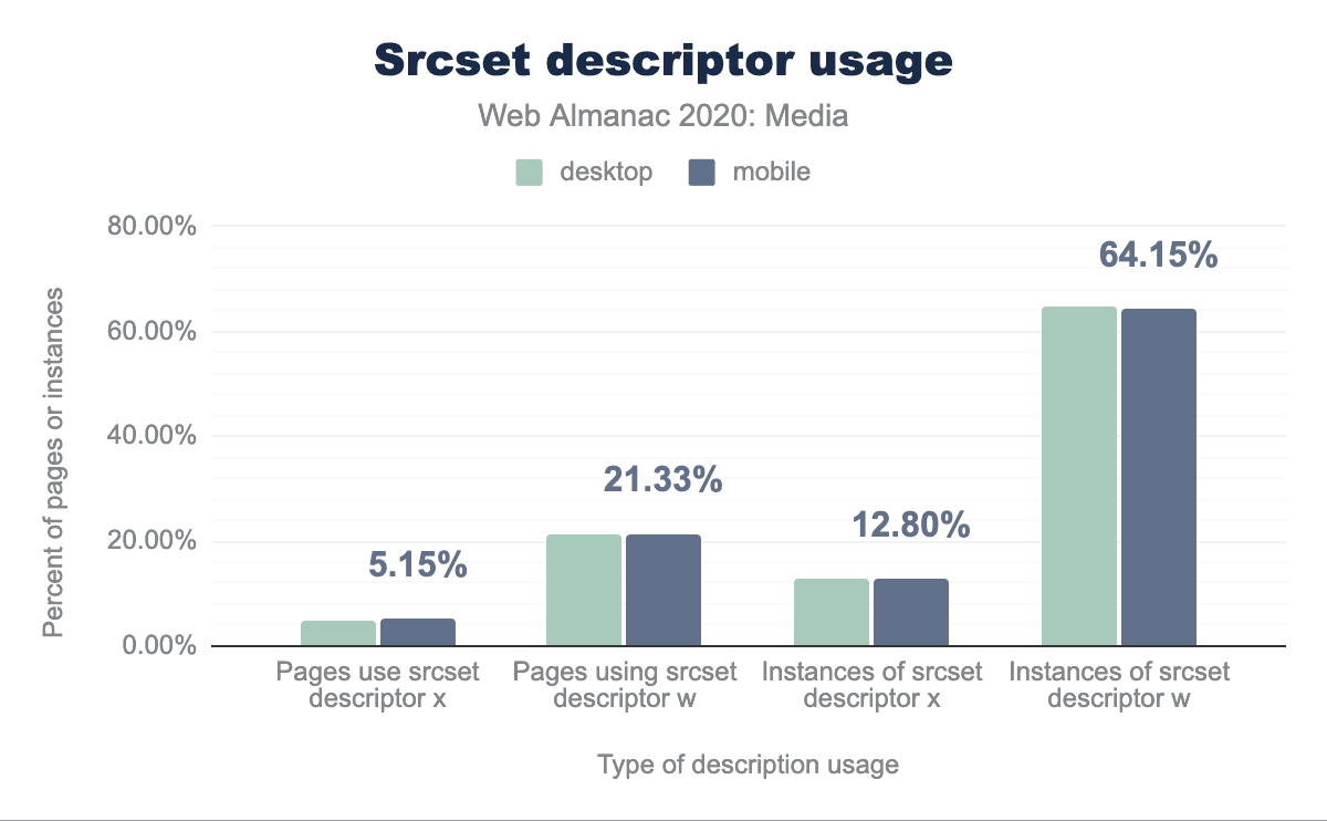 デスクトップとモバイルでも、約12%のページで<figure>要素が使用されていますが、約1%のページで<figcaption>を使用して説明文を追加していることがわかります。