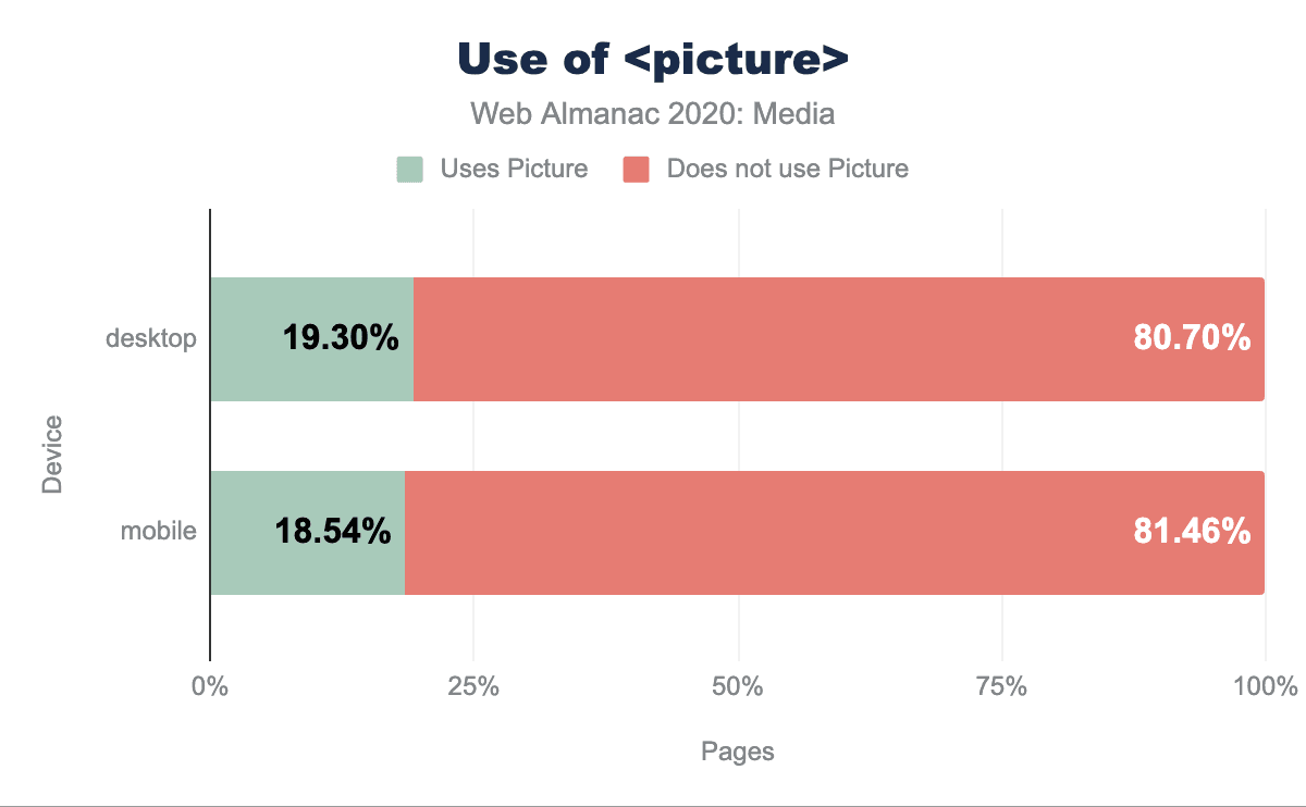 現在では、約19%のページで<picture>要素を使用して、少なくとも1つの画像を提供しています。