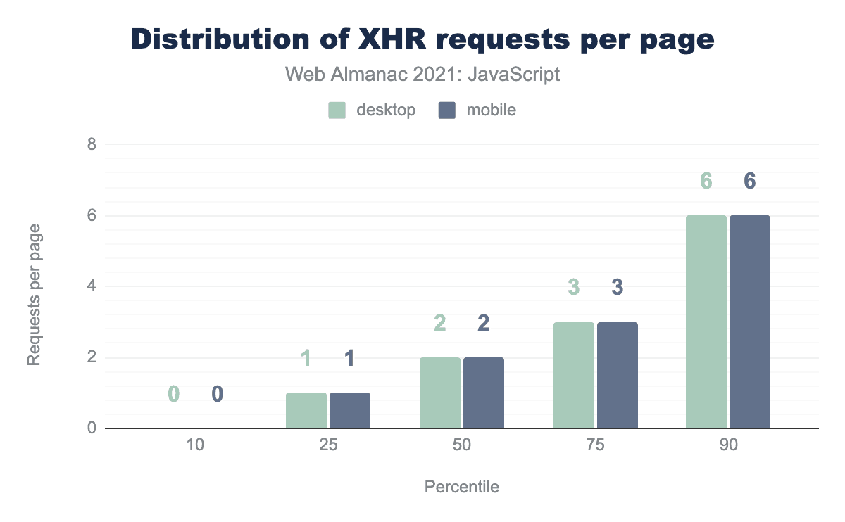 モバイルページの中央値は2回のXHRリクエストを行いますが、90パーセンタイルの割合では6回のXHRリクエストを行います。