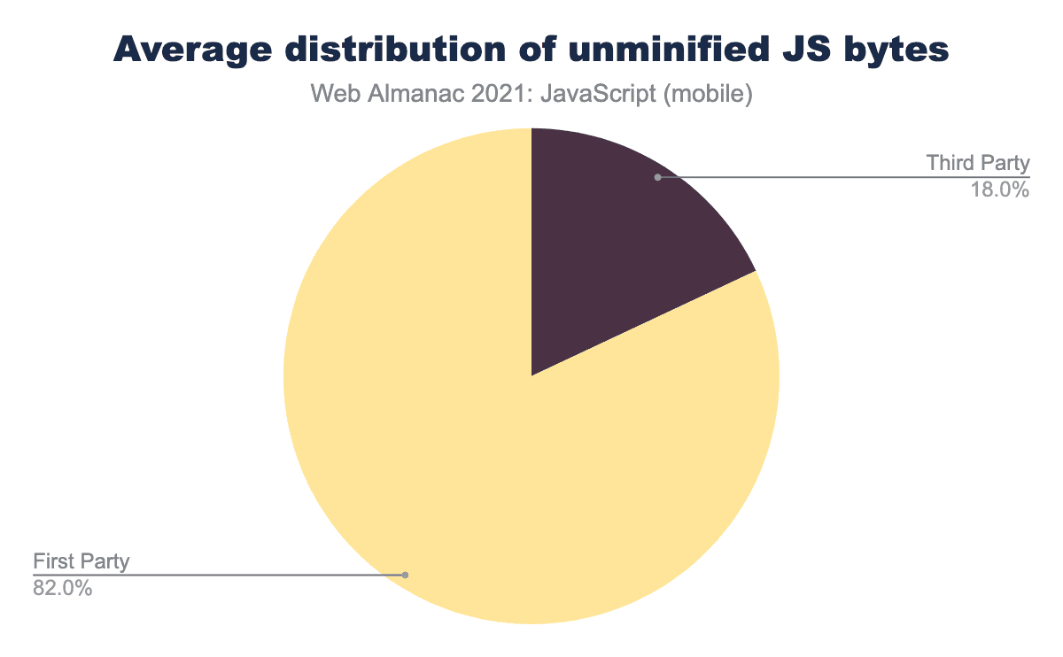 ホスト別に未処理のJavaScriptリソースを分類したところ、平均的なモバイルページの未処理のJavaScriptバイトの82.0%は、実際にはファーストパーティのスクリプトから来ていることがわかりました。