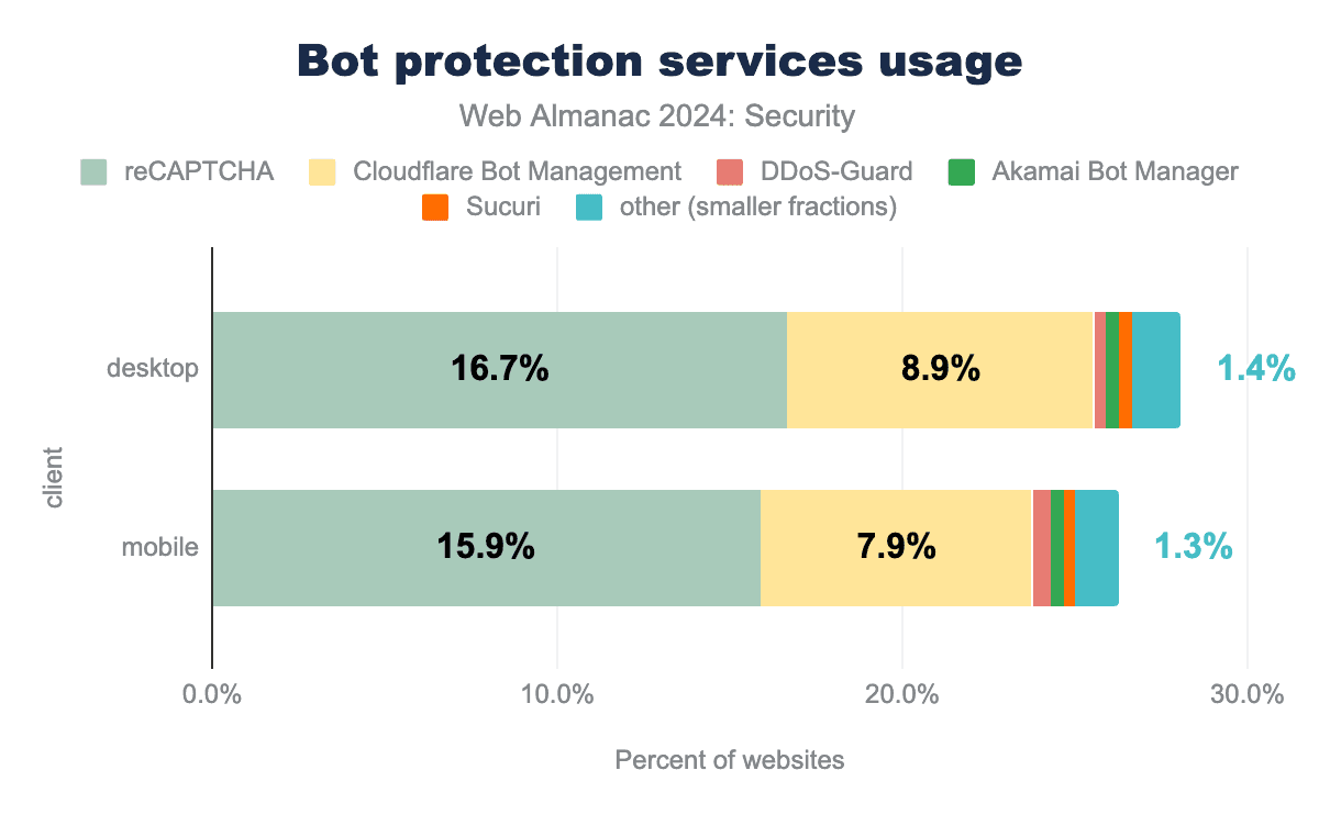 Wix、SquareSpace、Google Sites、Medium、Substackなど、提供会社によってホストされ、コンテンツのみがユーザーによって作成される多くの主要なCMSは、セキュリティ保護を広く展開しており、HSTS、X-Content-Type-Options、またはX-XSS-Protectionの採用率が99%台後半であることを示しています。Google Sitesは、もっとも多くのセキュリティ機能が導入されているCMSであり続けています。