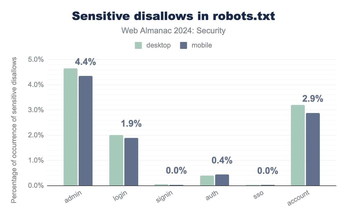 約4.3%のウェブサイトがrobots.txtファイルに少なくとも1つのadminエントリを含んでいることがわかります。